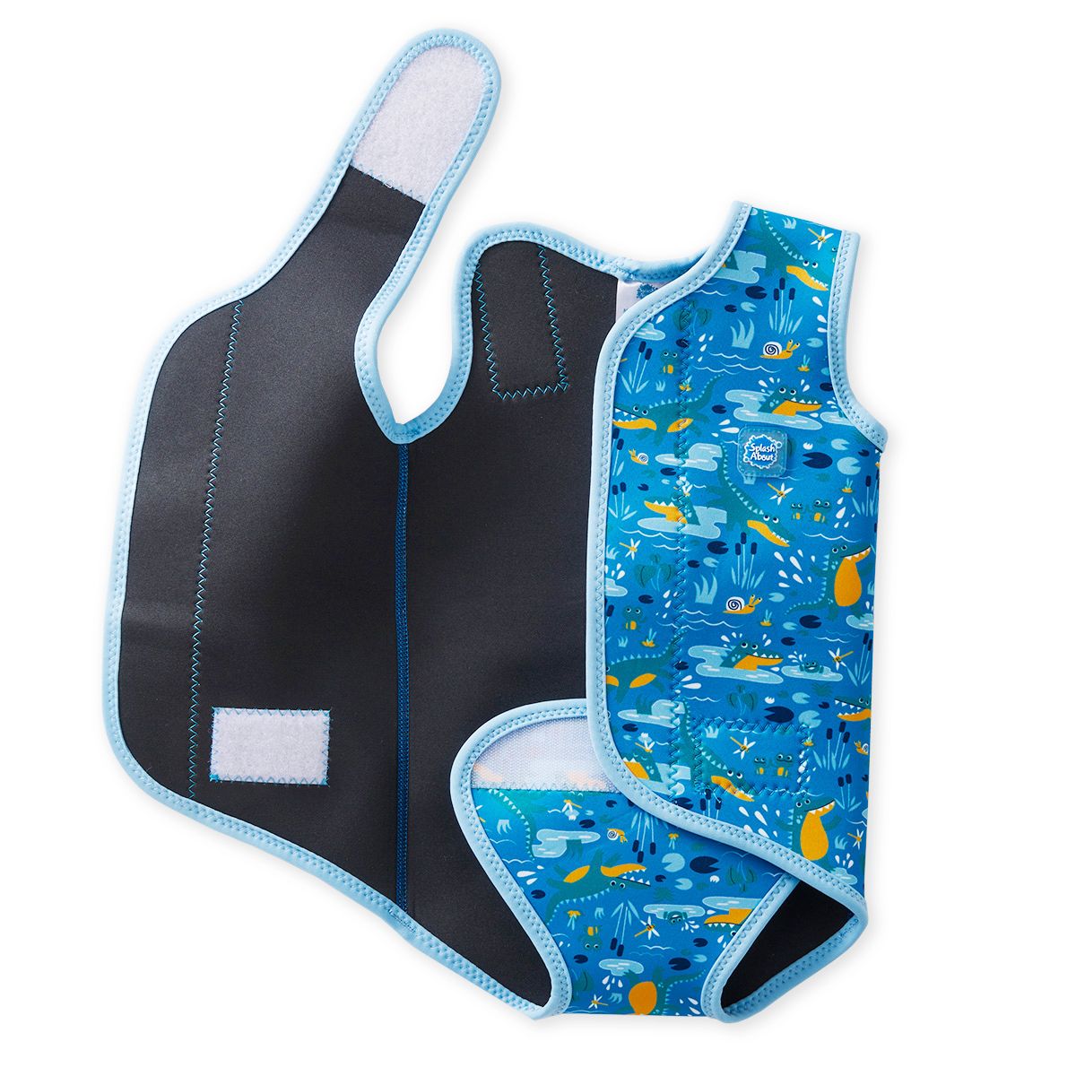 Made from soft neoprene to keep baby warm in the pool. Opens flat with adjustable Velcro straps for easy changing.